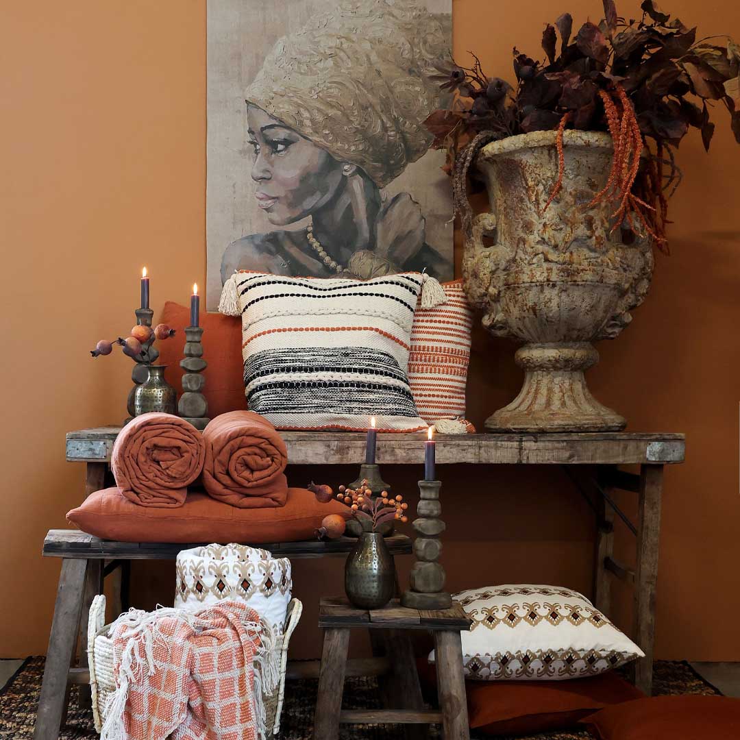 Mit ihrem auffälligen Paisleymuster in Schwarz, Terrakotta und Weiß bringt diese Quilt eine einzigartige Ästhetik in Ihr Zuhause und kombiniert Stil mit Funktionalität.